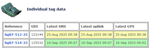 Front page of your data-page: Latest SMS, uplink and GPS data which should highlight in green.